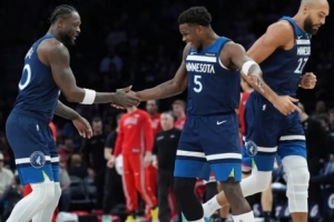 森林狼和隔壁火箭略像:長人鋒線群的防守,進攻最后就指著一個人。