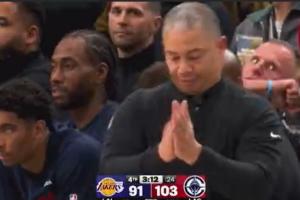 GIF-東契奇罰球不中,泰倫盧起身鼓掌