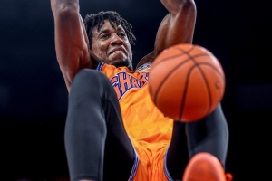 打急眼了?楊瀚森扣籃后被丹尼斯一把推倒 吐舌微笑回應
