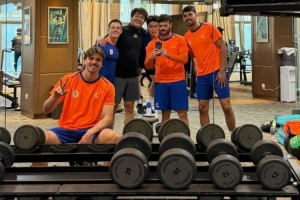 體育資訊1月23日訊 今日,泰山隊外援卡扎伊什維利更新社媒,曬出和隊友一同在健身房訓練的照片。克雷桑在評論區搞怪評論“喵”。