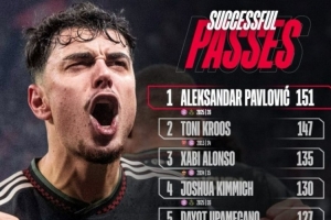 體育資訊1月23日訊 在本輪歐冠拜仁2-0擊敗圣吉羅斯的比賽中,帕夫洛維奇完成151次成功傳球,此數據創造了拜仁球員在單場歐冠紀錄,以下為具體榜單:
