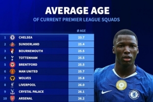 英超球隊(duì)平均年齡: