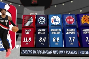 開拓者主場迎戰(zhàn)猛龍,轉(zhuǎn)播方給出一項數(shù)據(jù)統(tǒng)計,本賽季雙向合同球員場均得分前五: