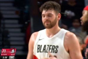 第三節3分39秒,開拓者換下克林根,但沒有按照上半場的輪換派上楊瀚森,上了小陣容。