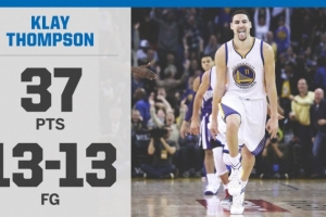 克萊在上半場不顯山露水,9投3中得到13分,但在第三節突然暴走,他單節打滿12分鐘,13投13中,其中三分9中9,罰球2中2,單節得到37分,創NBA歷史個人單節得分紀錄!