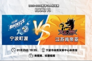 1月25日19:35,2025-26賽季CBA常規(guī)賽第十九輪,江蘇肯帝亞前往浙江寧波,進行對陣寧波町渥的二番戰(zhàn)。