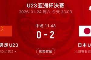 體育資訊01月24日訊 U23亞洲杯決賽,U23國足半場0-2暫時落后日本隊。與此同時開球的英超比賽,曼城半場2-0領(lǐng)先狼隊。