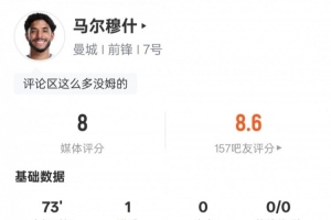 體育資訊1月25日訊 英超第23輪,曼城主場迎戰狼隊。馬爾穆什首發出戰,貢獻1粒進球,送出1次關鍵傳球,還有1次射中立柱,評分8.0。