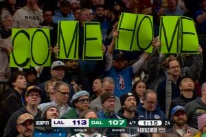 獨行俠球迷對著東契奇舉大標語:Come Home(回家吧)!