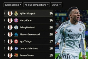 體育資訊1月25日訊 在本輪西甲,皇馬2-0擊敗比利亞雷亞爾,姆巴佩梅開二度。以下為五大聯(lián)賽球員在本賽季各項賽事總進(jìn)球榜,姆巴佩與凱恩均打進(jìn)34球,具體如下: