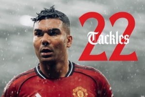 曼聯官方社媒曬出數據海報,卡塞米羅本賽季英超搶斷22次,曼聯隊內最多。