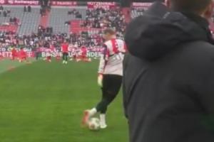 在比賽開始前的熱身環節,諾伊爾在接長傳球時展示了花式停球,將球穩穩停在地上,一旁正在直播的記者難以置信驚嘆連連。