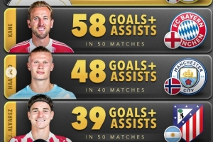 體育資訊11月10日訊 數據網站Score90盤點了2025年五大聯賽前鋒球員,在各項賽事(俱樂部+國家隊)參與進球榜,其中姆巴佩62球居首,以下為具體情況(進球+助攻):