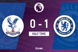 上半場傷停補時2分鐘,半場結(jié)束,切爾西暫1-0水晶宮。