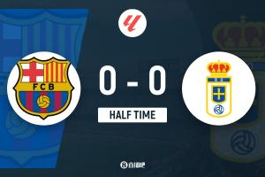 上半場比賽結束,巴塞羅那0-0皇家奧維耶多。