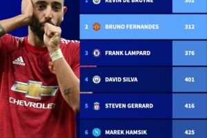 體育資訊1月26日訊 英超第23輪比賽,曼聯(lián)在客場挑戰(zhàn)阿森納。本場比賽,B費(fèi)助攻多爾古打進(jìn)反超比分的進(jìn)球,這讓他在英超中直接參與進(jìn)球數(shù)達(dá)到200球(103球,97助攻)。德國轉(zhuǎn)會(huì)市場盤點(diǎn)了新世紀(jì)五大聯(lián)賽最快直接參與200球中場球員,B費(fèi)312場位居次席,僅次于302場的德布勞內(nèi)。