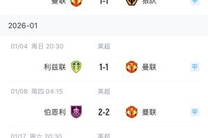 曼聯近6場聯賽3勝3平,是英超目前最長不敗紀錄。