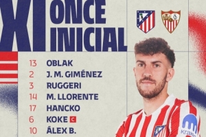 體育資訊11月1日訊 西甲第11輪,馬競主場對陣塞維利亞。賽前,官方公布了本場的首發名單。