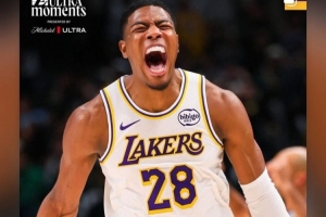 詹姆斯轉發了八村塁在昨日客場擊敗獨行俠比賽中命中關鍵三分的怒吼慶祝照,并寫道:“大心臟黑武士????”