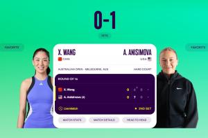 體育資訊01月26日訊 2026年澳網女單1/8決賽,王欣瑜對陣4號種子阿尼西莫娃。