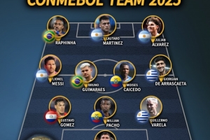 中場:梅西(阿根廷/邁阿密國際),吉馬良斯(巴西/紐卡),凱塞多(厄瓜多爾/切爾西),德·阿拉斯卡埃塔(烏拉圭/弗拉門戈)
