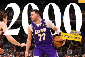 首節(jié)過后,東契奇砍下14分,其湖人生涯總得分突破2000+!湖人官方也曬出海報祝賀。