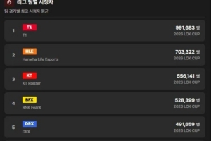 體育資訊1月27日訊 GEN只排第六?LCK杯平均收視率:T1位居第一HLE第二