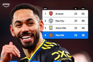 體育資訊1月27日訊 英超第23輪比賽,曼聯客場3-2擊敗阿森納。此役過后,曼聯積38分排名英超第四位,落后榜首阿森納12分。