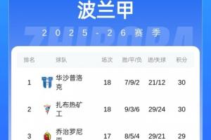 波蘭足球甲級聯賽戰至第18輪,積分形勢十分混亂引發外網球迷熱議,網友總結波蘭甲積分榜槽點如下: