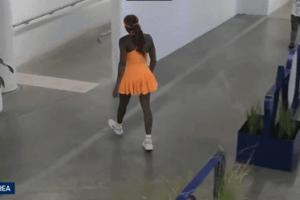 賽后轉播鏡頭拍到高芙瘋狂砸拍泄憤。