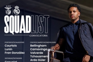 體育資訊1月27日訊 北京時間1月29日凌晨4:00,歐冠聯賽階段第8輪,皇馬將客戰本菲卡。賽前,皇馬官方公布本場比賽大名單,維尼修斯和姆巴佩領銜鋒線,貝林厄姆坐鎮中場。