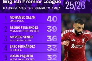 體育資訊11月11日訊 英超聯賽已經進行了11輪,squakwa也統計了本賽季英超傳球到禁區內次數情況,薩拉赫力壓B費居首。