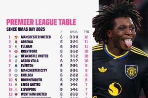 體育資訊1月28日訊 據Opta統計,自圣誕節以來,沒有任何球隊在英超的勝率超過50%,曼聯拿到12分同期最多。