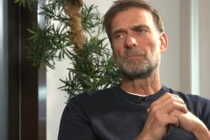 主持人:我很高興能與這位最著名、最受歡迎的德國足球教練交談。他曾是國際足聯年度最佳教練,是一位真正的冠軍締造者。獨一無二的尤爾根·克洛普。你好,尤爾根,見到你真高興。