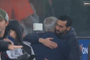 體育資訊1月29日訊 在本菲卡對(duì)陣皇馬的歐冠前,本菲卡主帥穆里尼奧與昔日弟子、目前擔(dān)任皇馬主帥的阿韋洛亞擁抱。