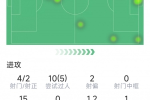 體育資訊1月29日訊 在本輪歐冠阿森納對陣阿拉木圖凱拉特,馬丁內利破門,以下為他在本場數據: