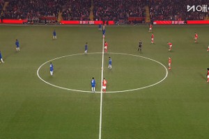 陳蒲下底傳中,澤卡頭球攻門擊中門柱內側彈出,隨后懊惱連續拍頭