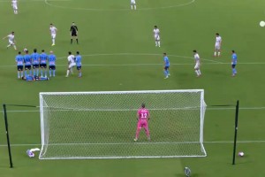 藝高人膽大!塞梅尼奧后場(chǎng)直接起腳吊射,皮球稍稍高出橫梁